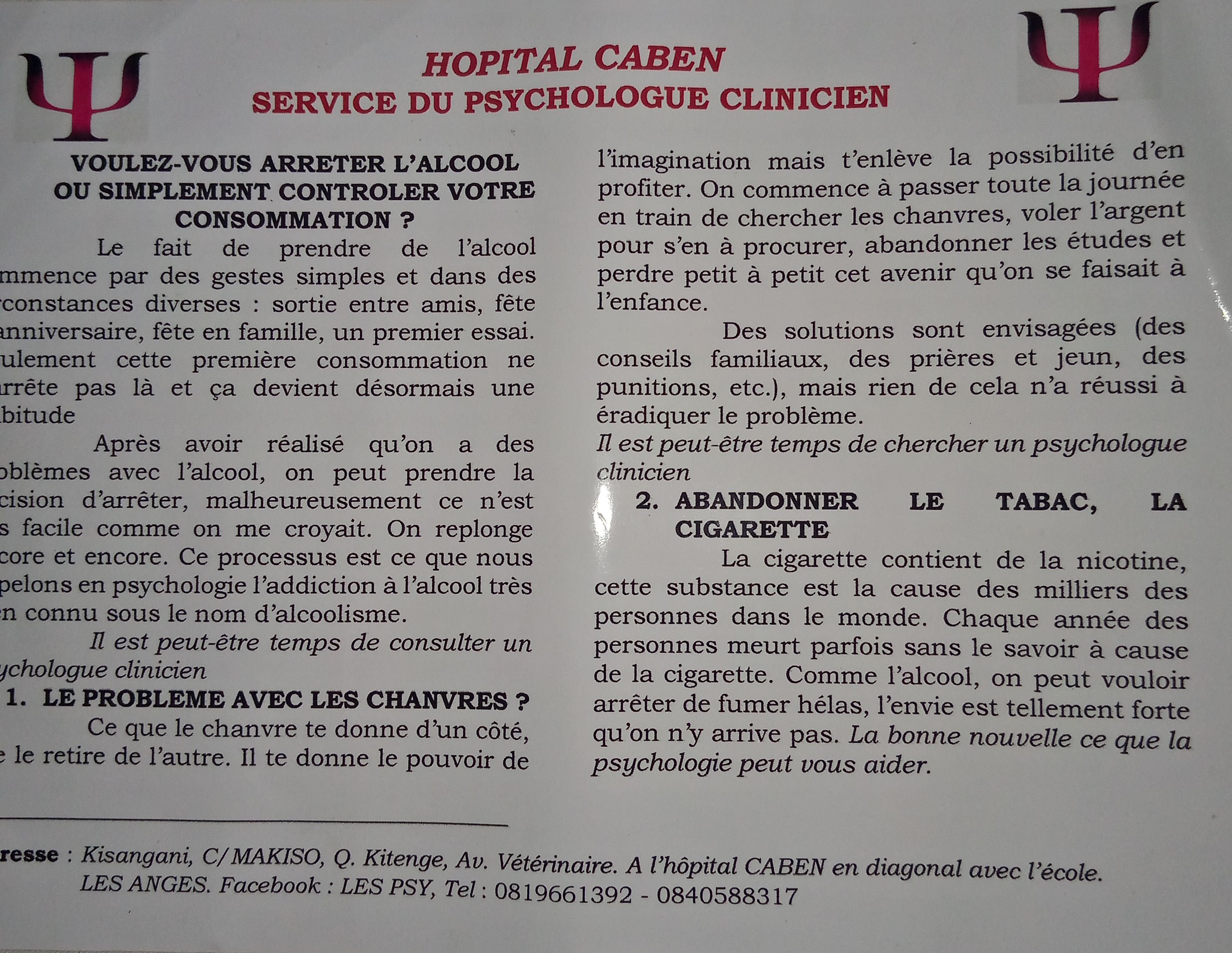Problème des addictions: accompagner les personnes ayant le problème d’alcool ou alcoolisme, de chanvres ou toxicomanie et ceux ayant des problèmes de tabac ou cigarette.